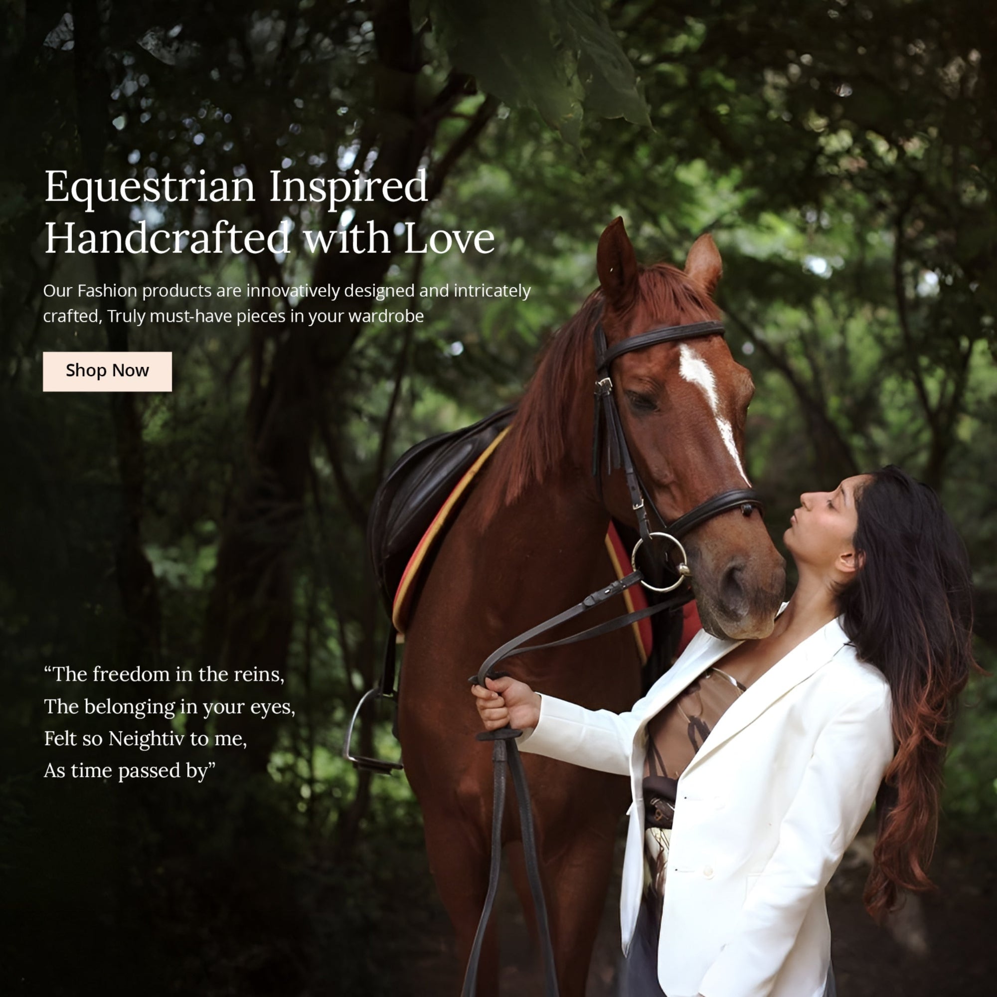 In 2024, She launched her brand, NEIGHTIV, for people passionate about horses. The brand’s philosophy revolves around the calmness and power we experience around the beauty of horses. It is about the shared passion around horses, that has been directed towards art on silk.